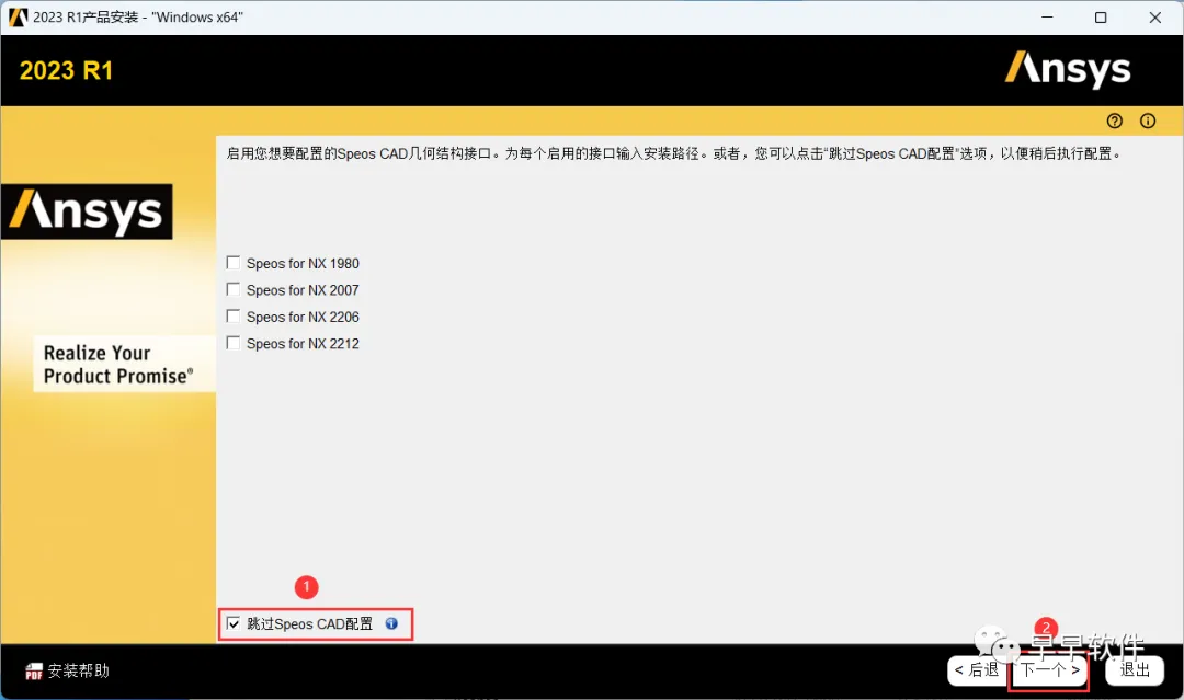 40、勾选【跳过Speos CAD配置】,再点击【下一个】