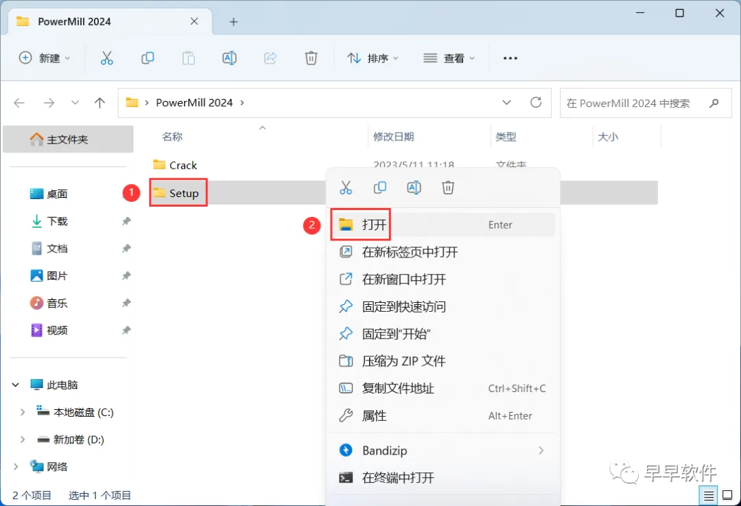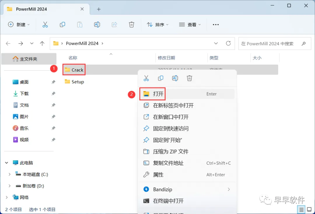 10、回到PowerMill 2024文件夹,找到【Crack】文件夹,右键【打开】它