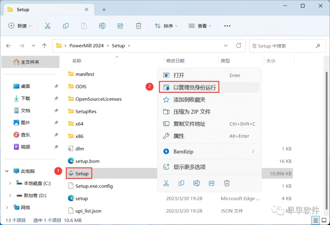 4、找到【Setup】应用程序,右键选择【以管理员身份运行】它