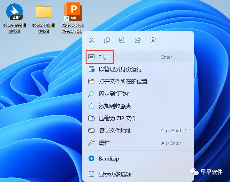 13、回到桌面,右键桌面上的【PowerMill 2024软件图标】,点击【打开】