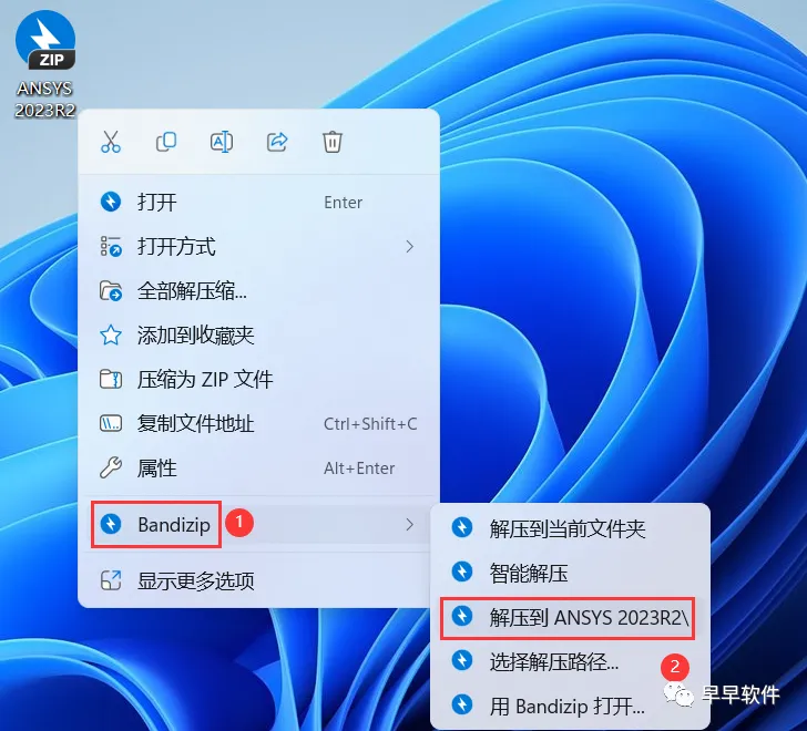 1、下载ANSYS 2023R2软件安装包到电脑上,右键选择【解压到ANSYS 2023R2\】2、右键【打开】解压后的文件夹