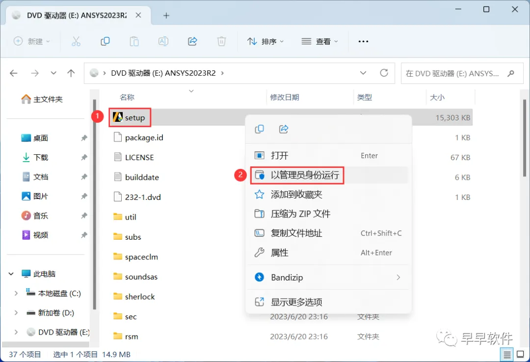 36、回到ANSYS 2023R2文件夹,找到【ANSYS2023R2…DISK2】文件,右键点击【装载】
