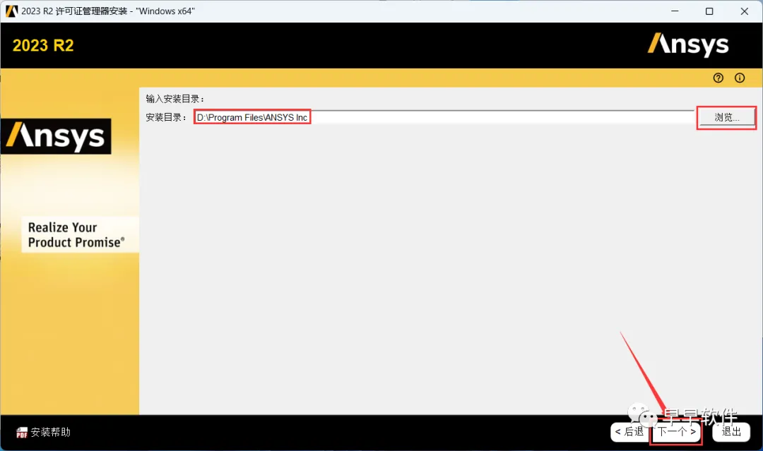 42、回到ANSYS 2023R2安装程序,点击【浏览】