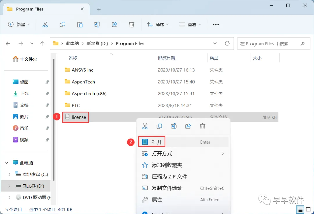 24、选择路径D:\Program Files下的license文档,再点击【打开】