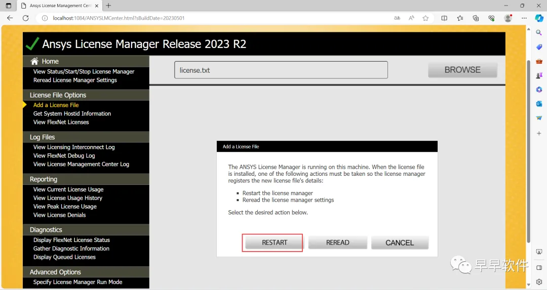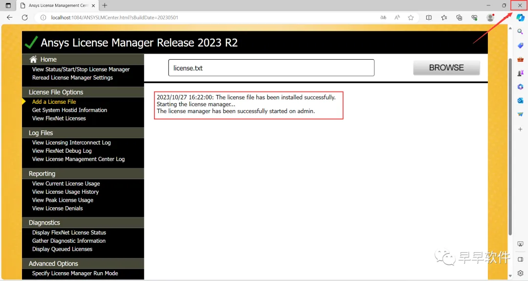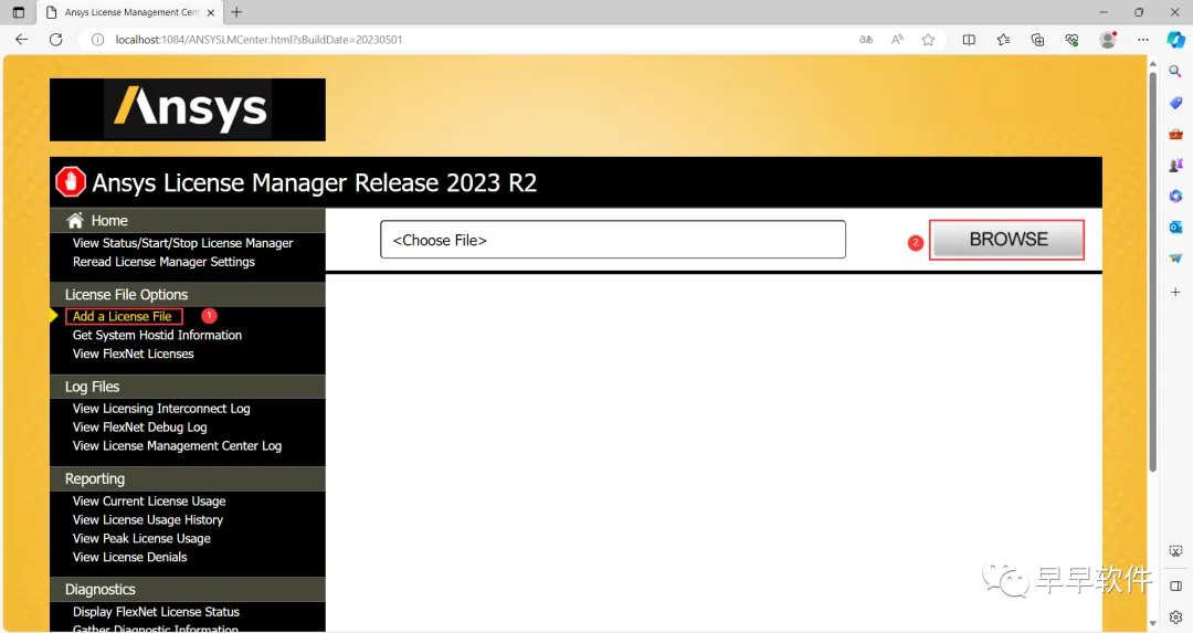23、回到浏览器界面,点击左侧的【Add a License File】,再点击【BROWSE】