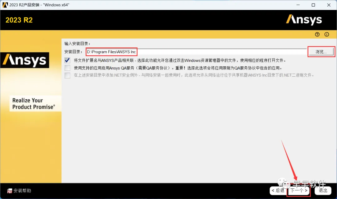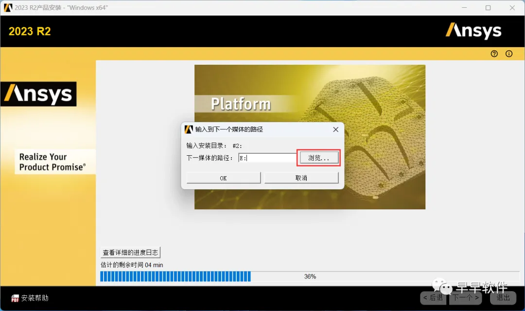 37、回到ANSYS 2023R2安装程序,点击【浏览】