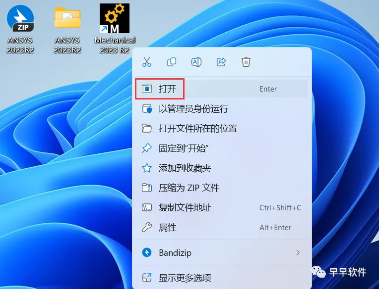 59、右键桌面上的【Mechanical 2023 R2软件图标】,点击【打开】