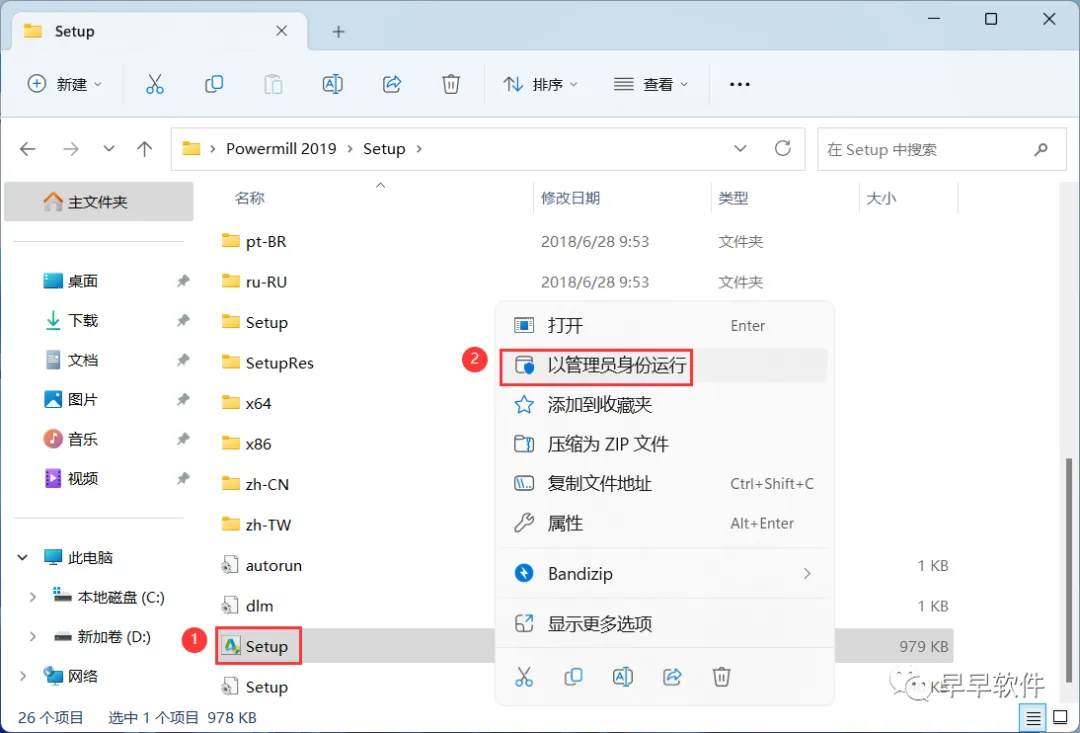 4、找到【Setup】应用程序,右键选择【以管理员身份运行】它