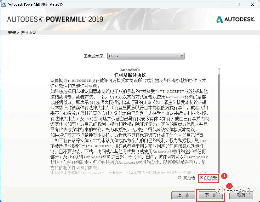 6、勾选【我接受】,再点击【下一步】
