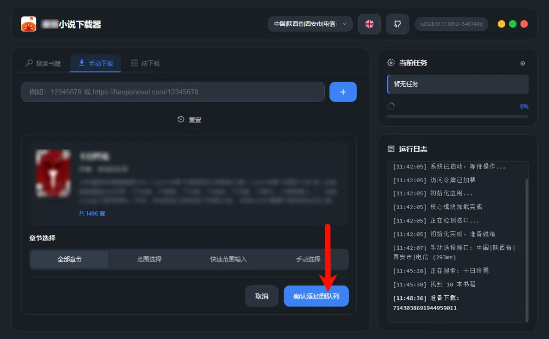 今日,我要向大家推荐一款超实用的开源某茄小说下载神器!它完全免费,且无任何广告干扰,支持一键批量下载,让你轻松获取心仪小说。更棒的是,这款下载器兼容Windows、macOS、Linux等多个操作系统,无论你使用哪种设备,都能便捷使用,操作起来极为简单!