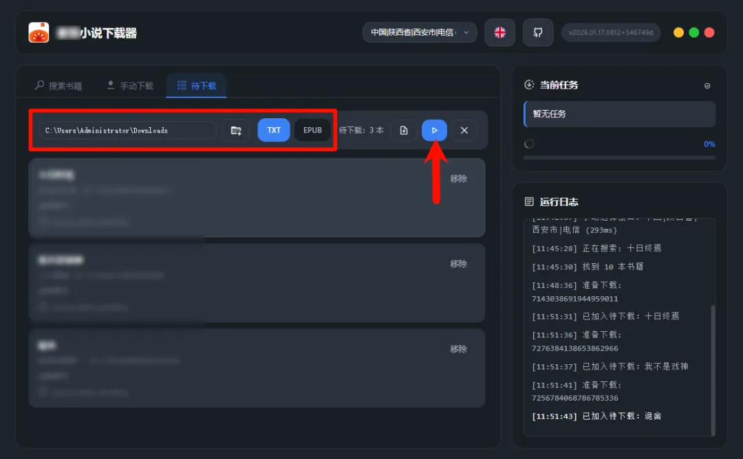 格式支持:导出为TXT(纯文本)或EPUB(电子书)格式。