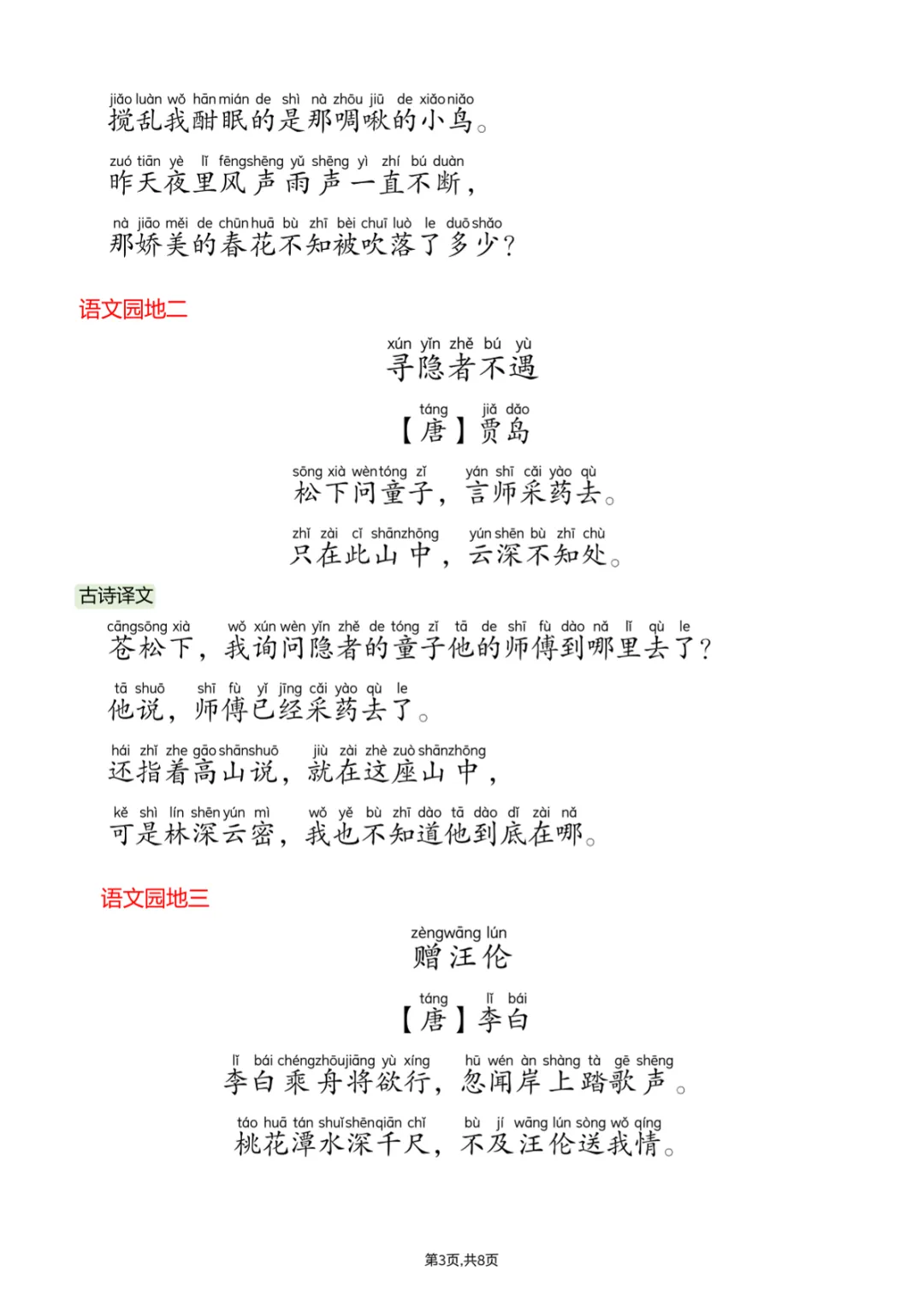 一年级(下)语文 26春课文必背内容汇总(拼音版)