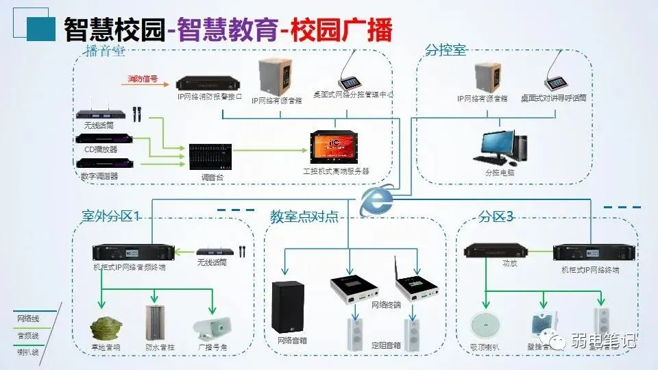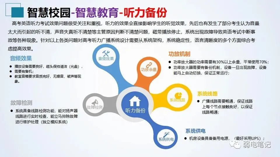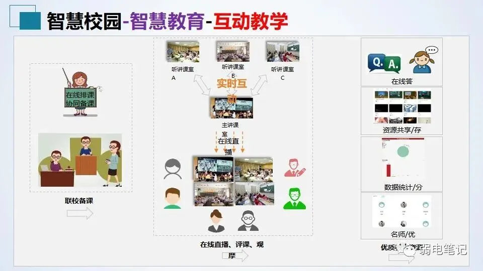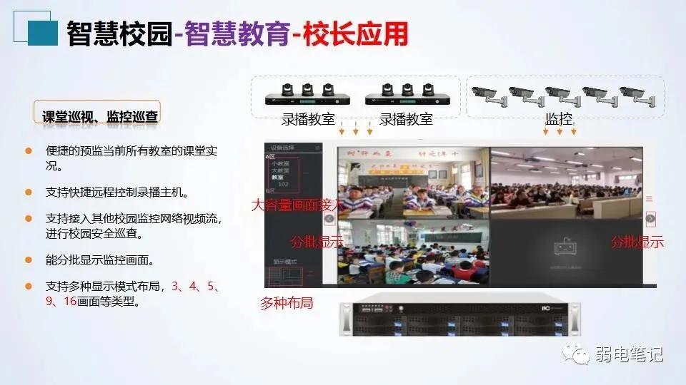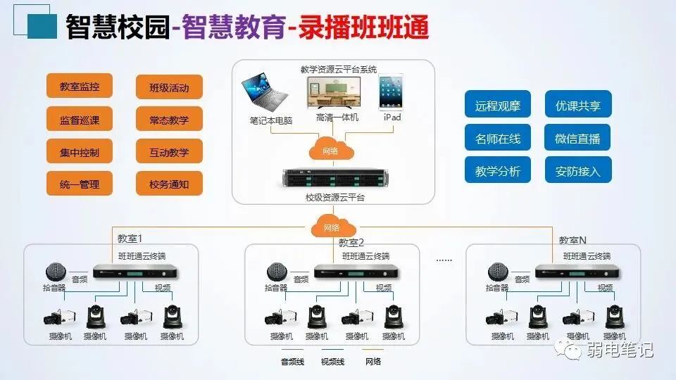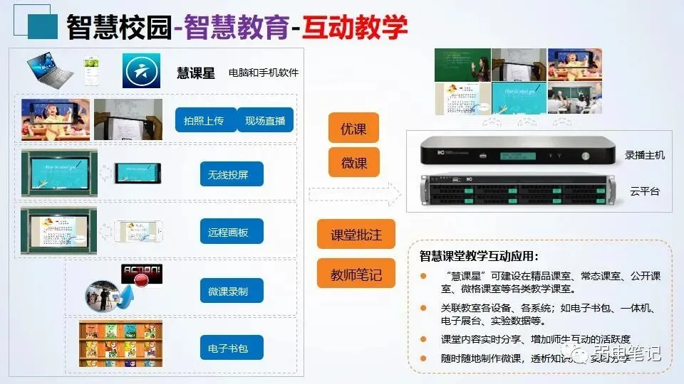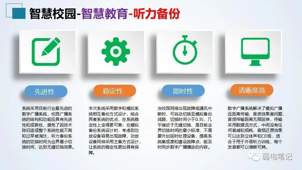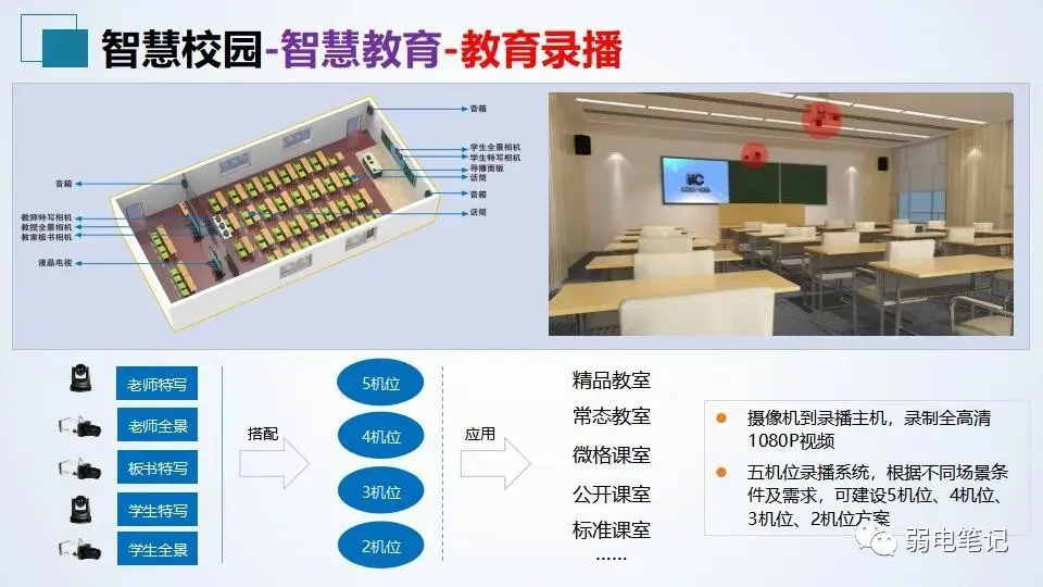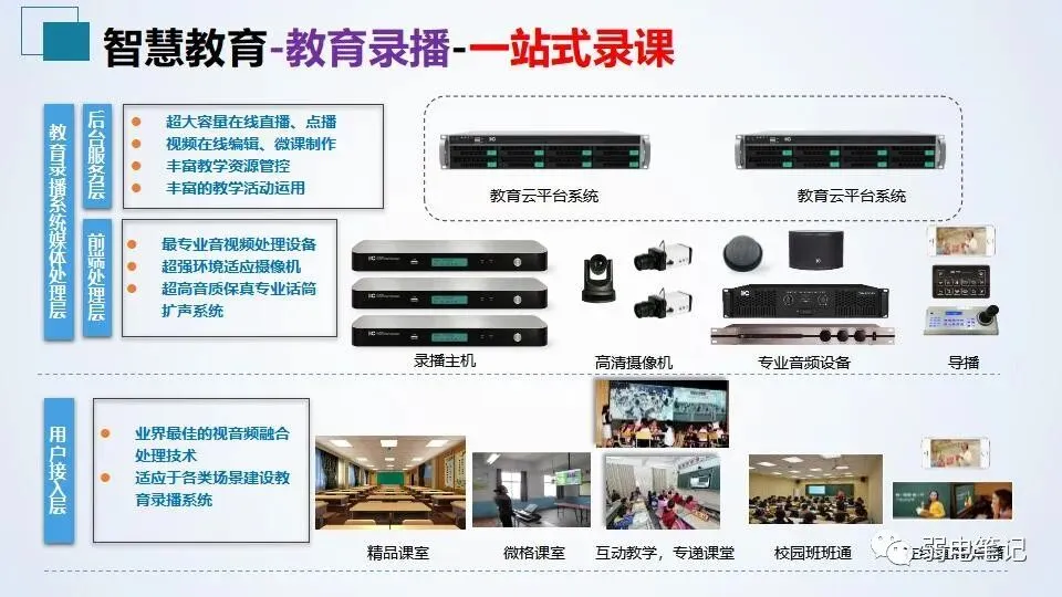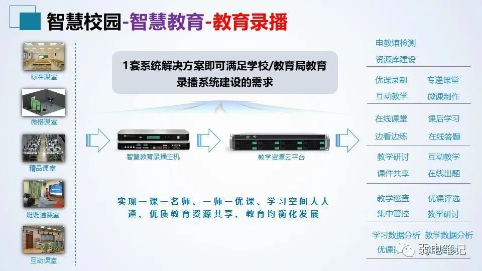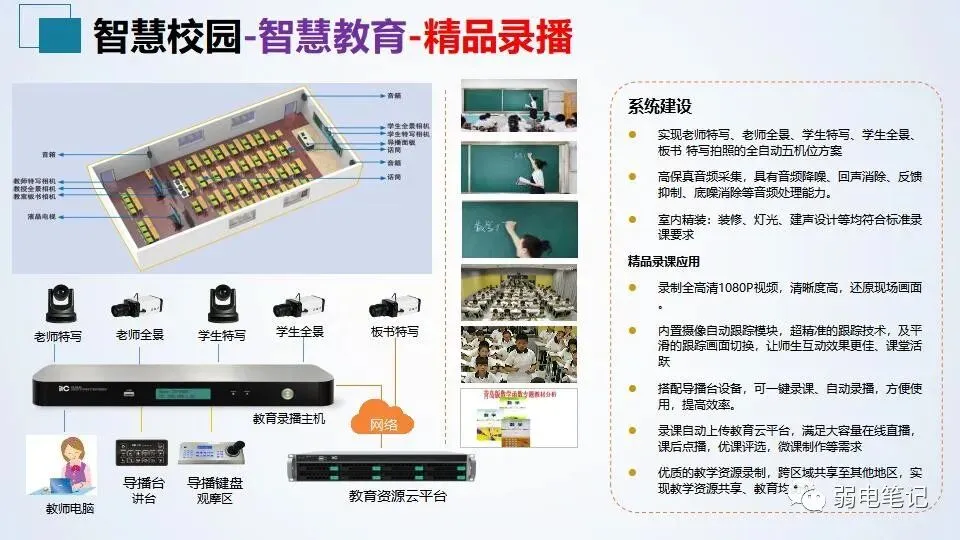 智慧教学:教学录播系统、校园广播系统&听力考试系统、可视化教学信息发布系统、多媒体教学中控、场馆比赛扩声系统