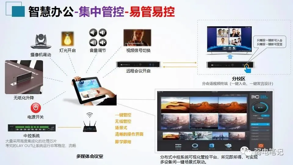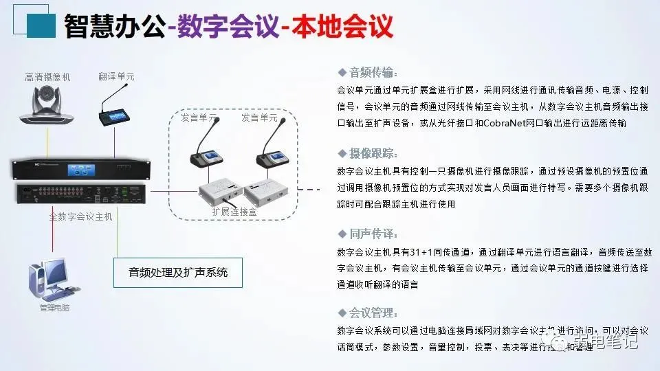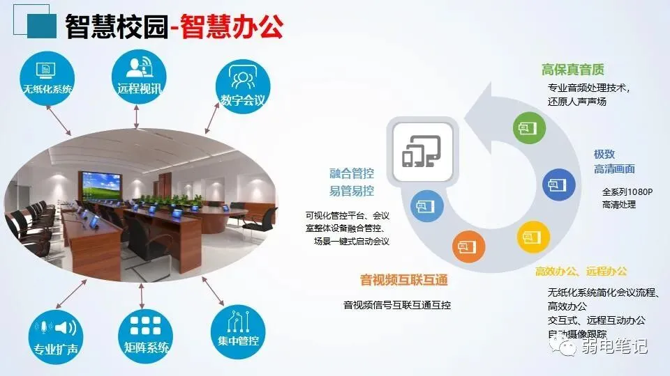 智慧办公:无纸化会议系统、远程视讯系统、数字会议系统、中控矩阵系统、会议音响系统、礼堂音响系统