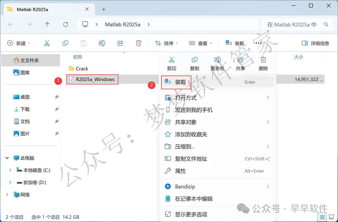 3、找到【R2025a_ Windows】文件,再点击【装载】