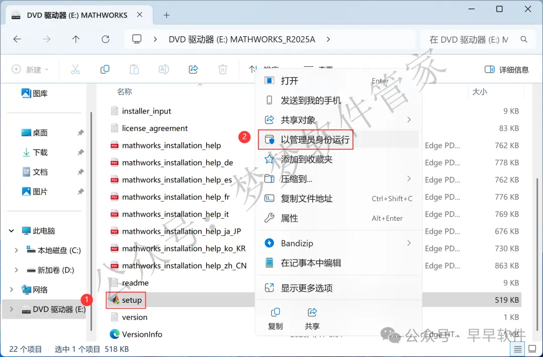 4、找到【setup】应用程序,右键选择【以管理员身份运行】它