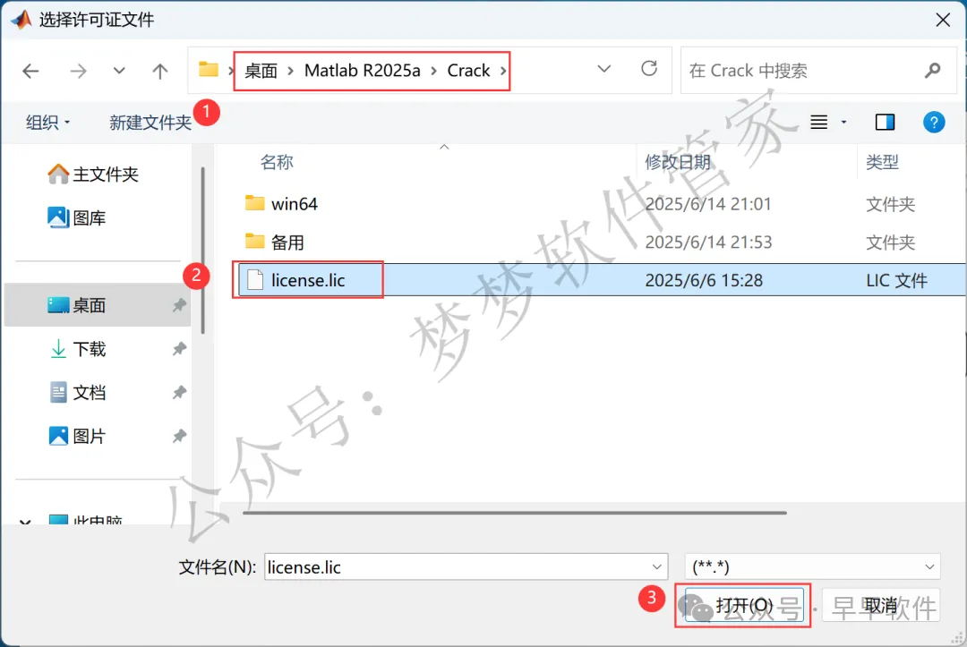9、找到并选中安装包Crack文件夹下的【license.lic】,再点击【打开】