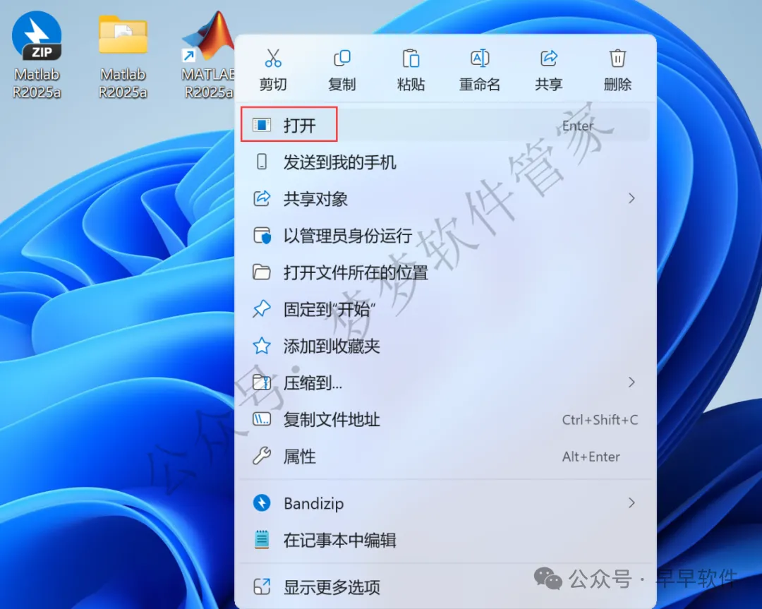 22、回到桌面,右键桌面上的【Matlab R2025a软件图标】,点击【打开】