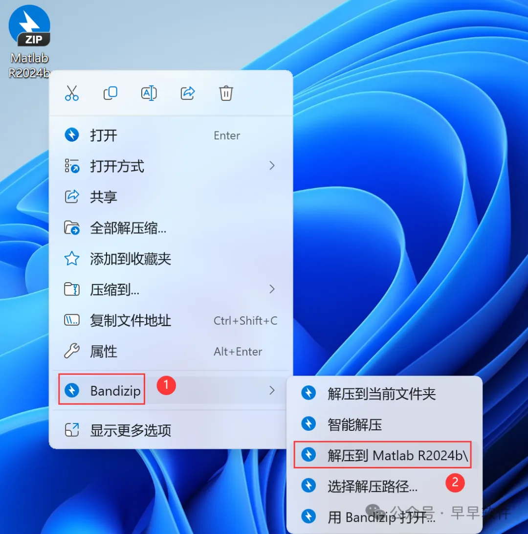 1、下载Matlab R2024b软件安装包到电脑上,右键选择【解压到Matlab R2024b\】