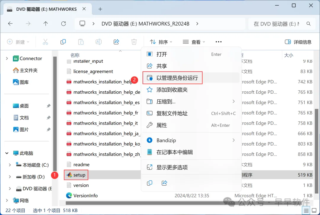 4、找到【setup】应用程序,右键选择【以管理员身份运行】它