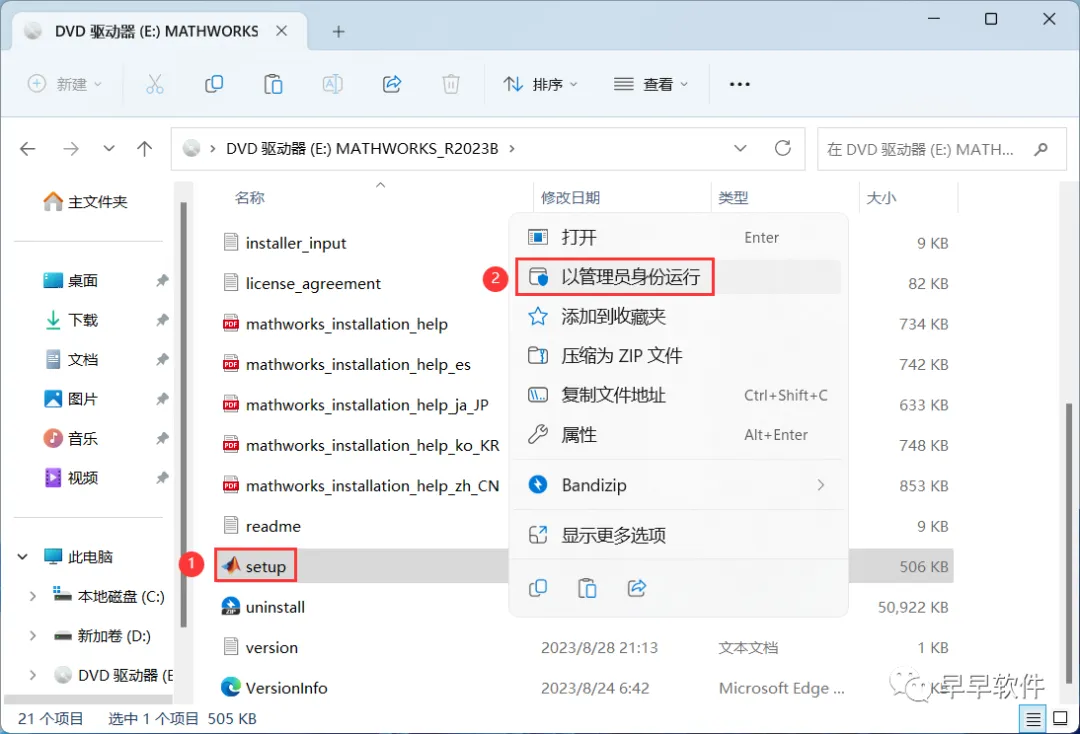 4、找到【setup】应用程序,右键选择【以管理员身份运行】它