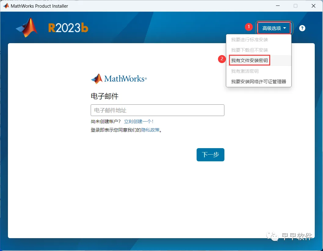 5、依次点击【高级选项】、【我有文件安装密钥】