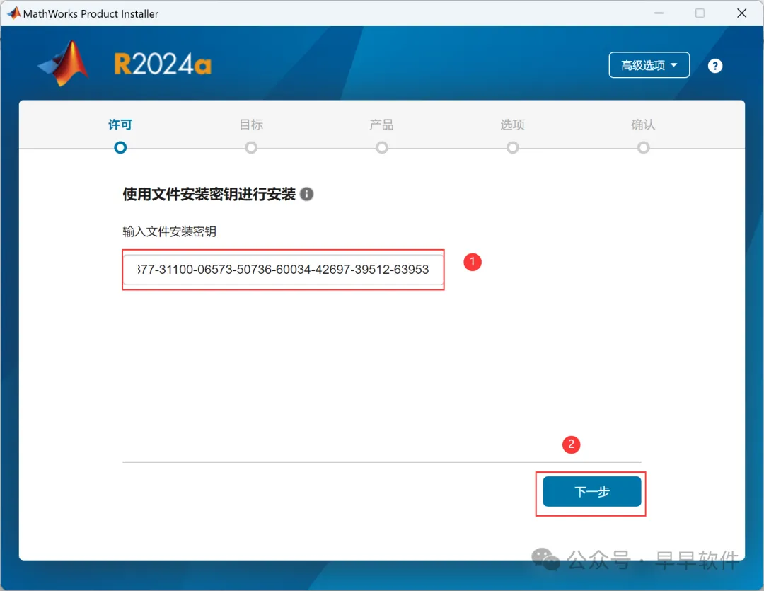 5、依次点击【高级选项】、【我有文件安装密钥】