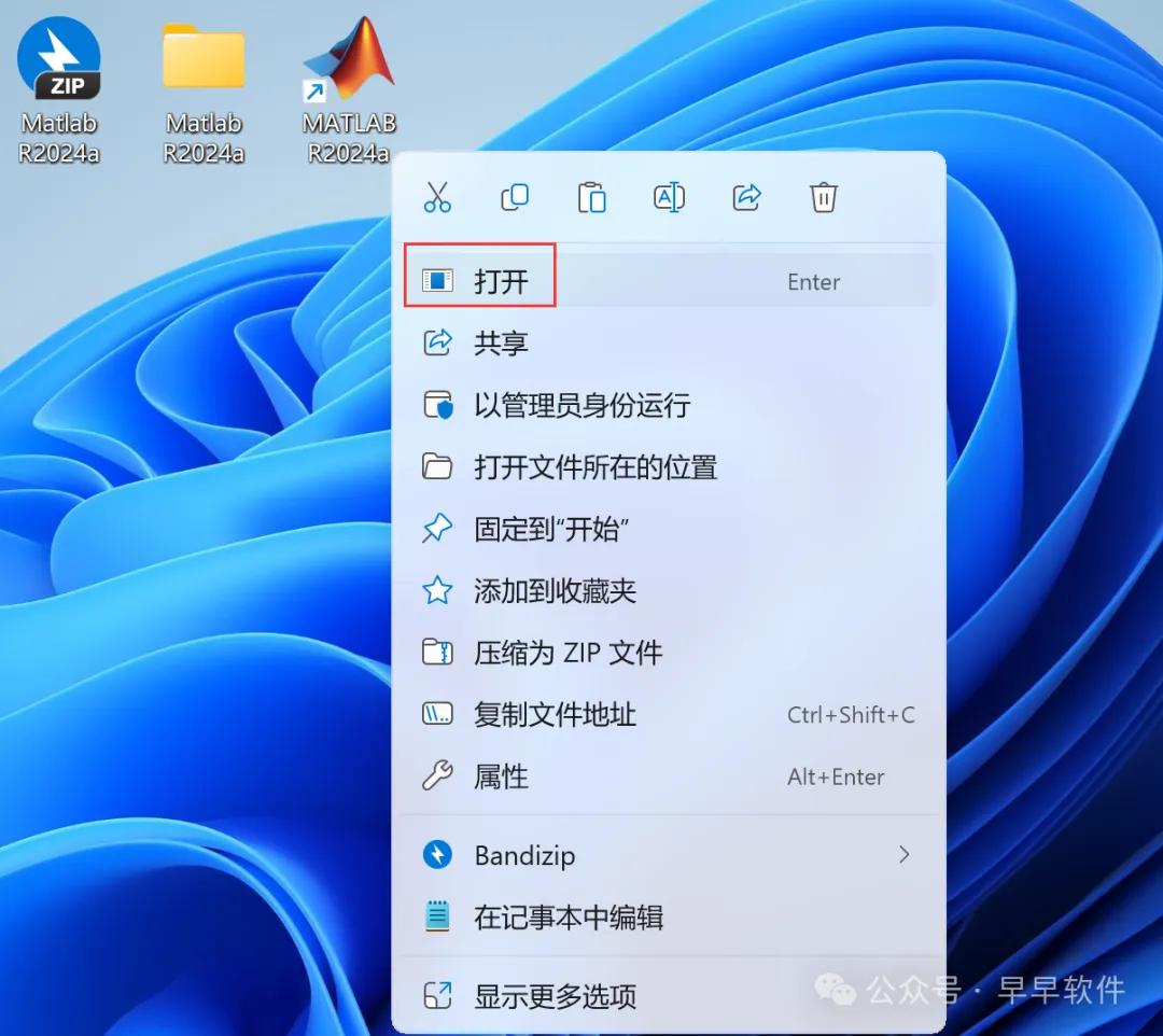 22、回到桌面,右键桌面上的【Matlab R2024a软件图标】,点击【打开】