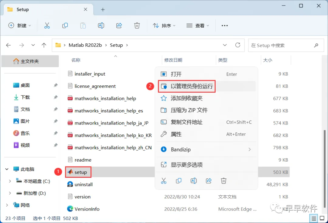 4、找到【setup】应用程序,右键选择【以管理员身份运行】它