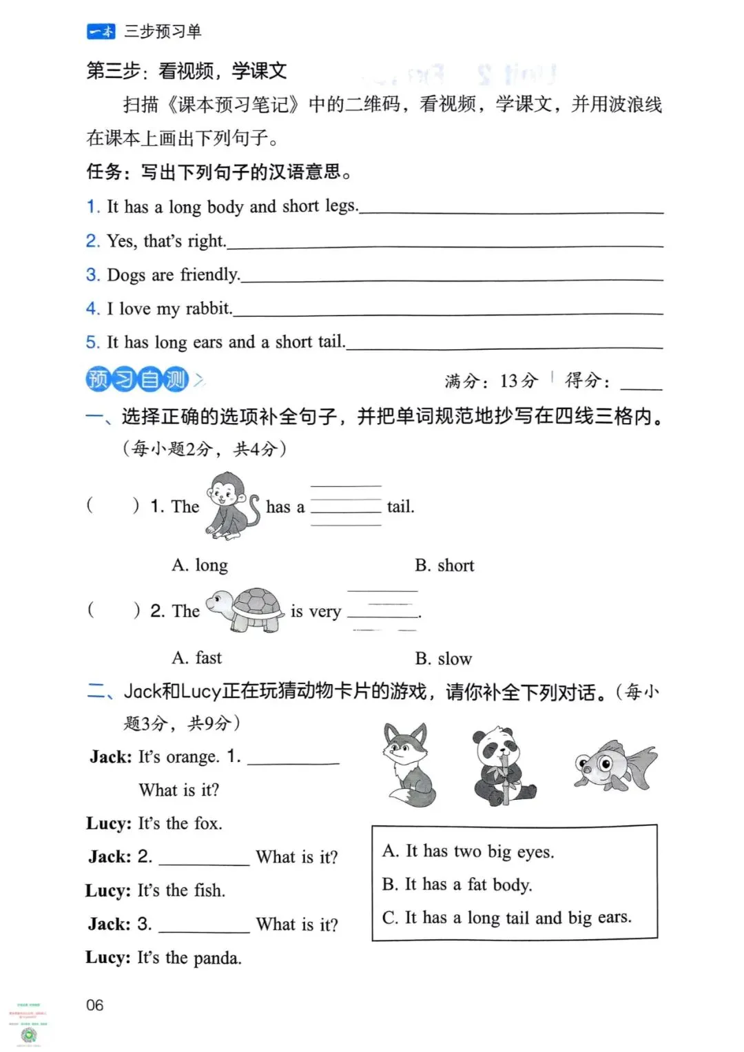 ●新三年级英语下册同步翻译朗读视频