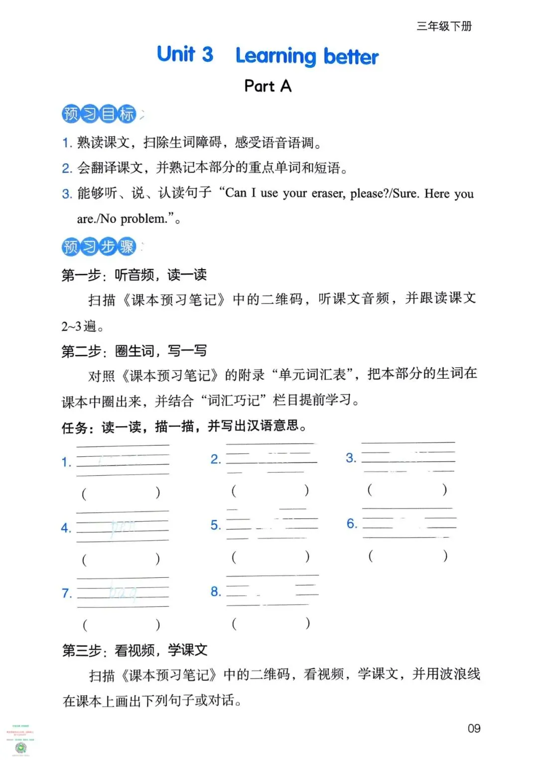 ●新三年级英语下册 Unit1 单词音频及课本,可下载