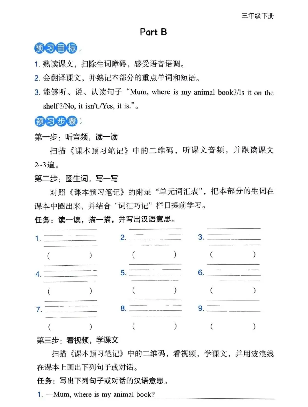 ●新三年级英语下册全册三步预习单,免费下载