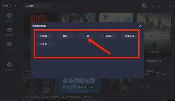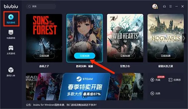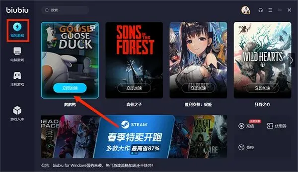 biubiu加速器pc版怎么搜索游戏?