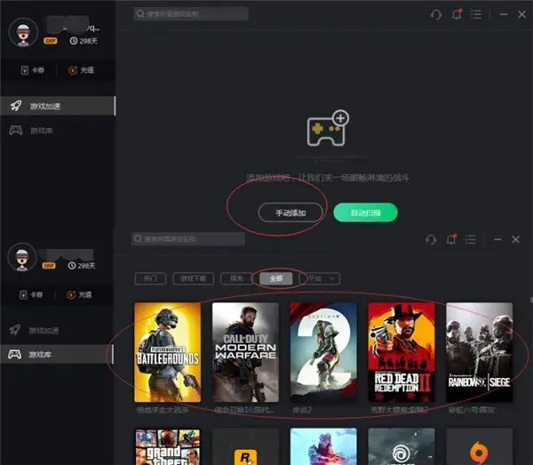 2、进入主界面后首先搜索添加游戏(可手动添加也可以自动扫描);