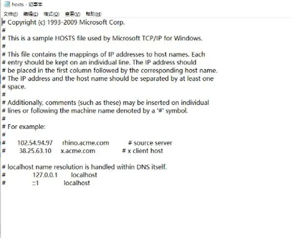 2、用记事本打开所有含host的文件(host、Imhosts、imhosts.sam等),如下全部是带#号就不用调整,关闭窗口即可