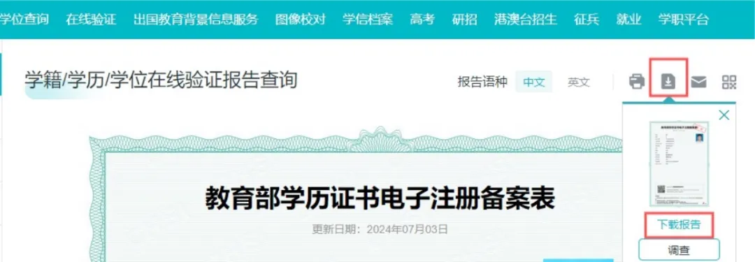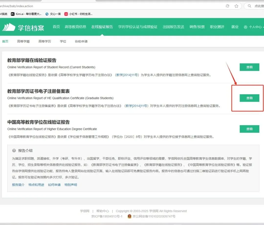 第四歩:点“查看教育部学历证书电子注册备案表”,选择查看
