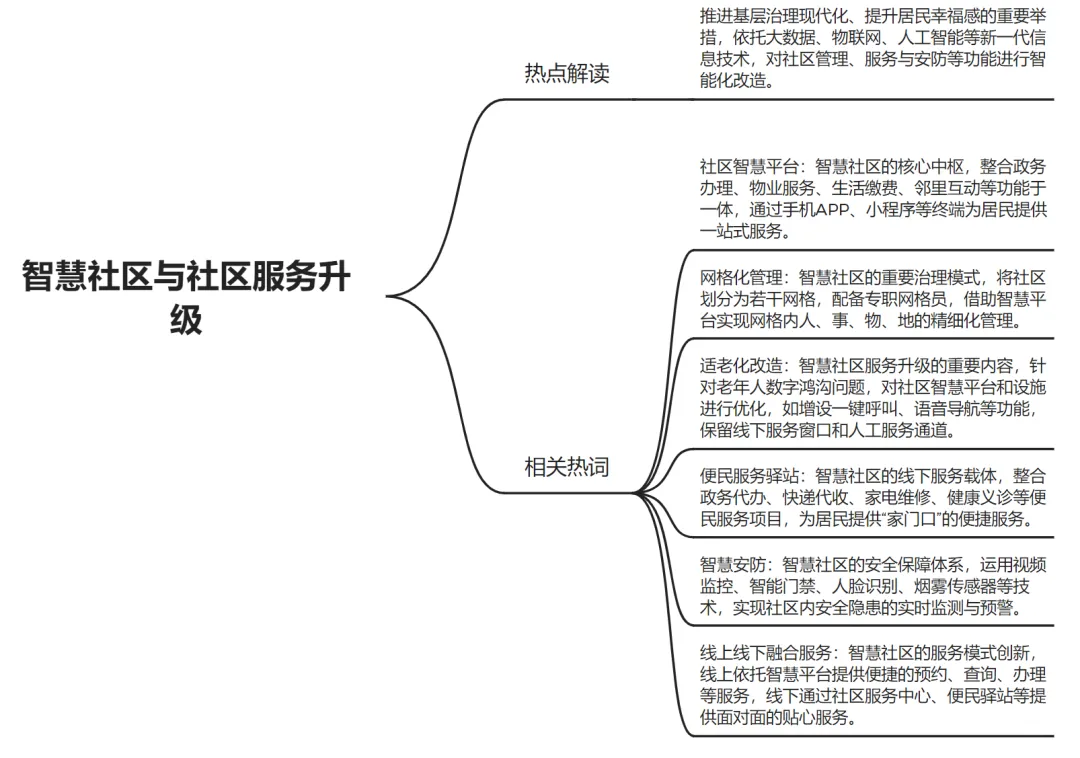 智慧社区与社区服务升级是推进基层治理现代化、提升居民幸福感的重要举措,依托大数据、物联网、人工智能等新一代信息技术,对社区管理、服务与安防等功能进行智能化改造。当前,我国社区服务存在供给不均、响应不及时、资源整合不足等痛点,建设智慧社区需搭建统一的社区智慧管理平台,整合政务服务、生活服务、健康服务等资源,实现“一网通办、一网统管”。同时,要聚焦老年人、残疾人等特殊群体的需求,保留线下服务渠道,推动线上线下服务融合。此外,需健全社区智慧安防体系,运用视频监控、智能门禁等技术提升社区安全防范能力,通过数字化手段优化社区治理流程,让居民享受更便捷、高效、精准的社区服务。