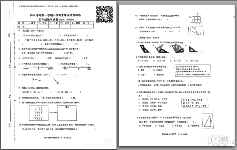 今天为大家准备的是家长上传的浙江省杭州市拱墅区四上期末数学试卷,获取试卷完整电子版pdf免费下载及参考答案分析请点击文中的小程序!