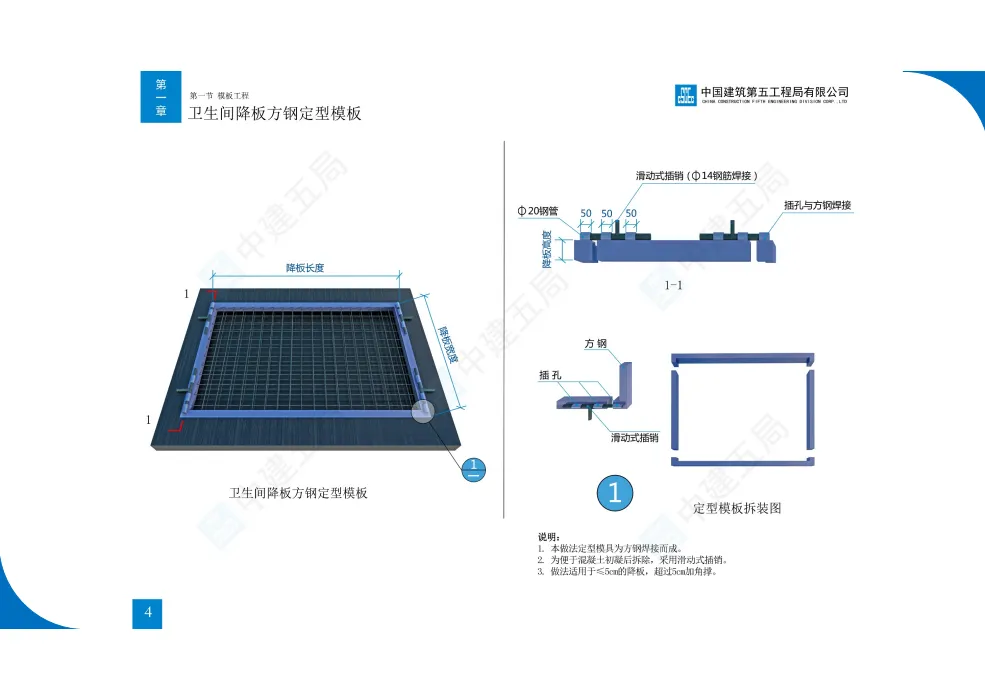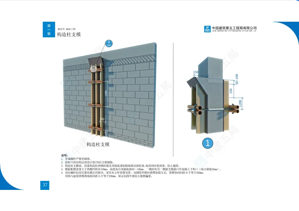 该三维图集是中国建筑第五工程局 2021 年发布的房建领域技术质量工艺标准化文件,核心涵盖主体结构工程、装饰装修工程、防水工程三大核心板块,详细明确了各分项工程(模板、钢筋、混凝土、砌体、抹灰、面砖、门窗、涂料、保温等)的关键做法、尺寸参数、材料要求、施工流程及质量控制要点,突出标准化、定型化、可周转的施工原则,为房建工程各环节施工提供了规范且具体的技术指导。