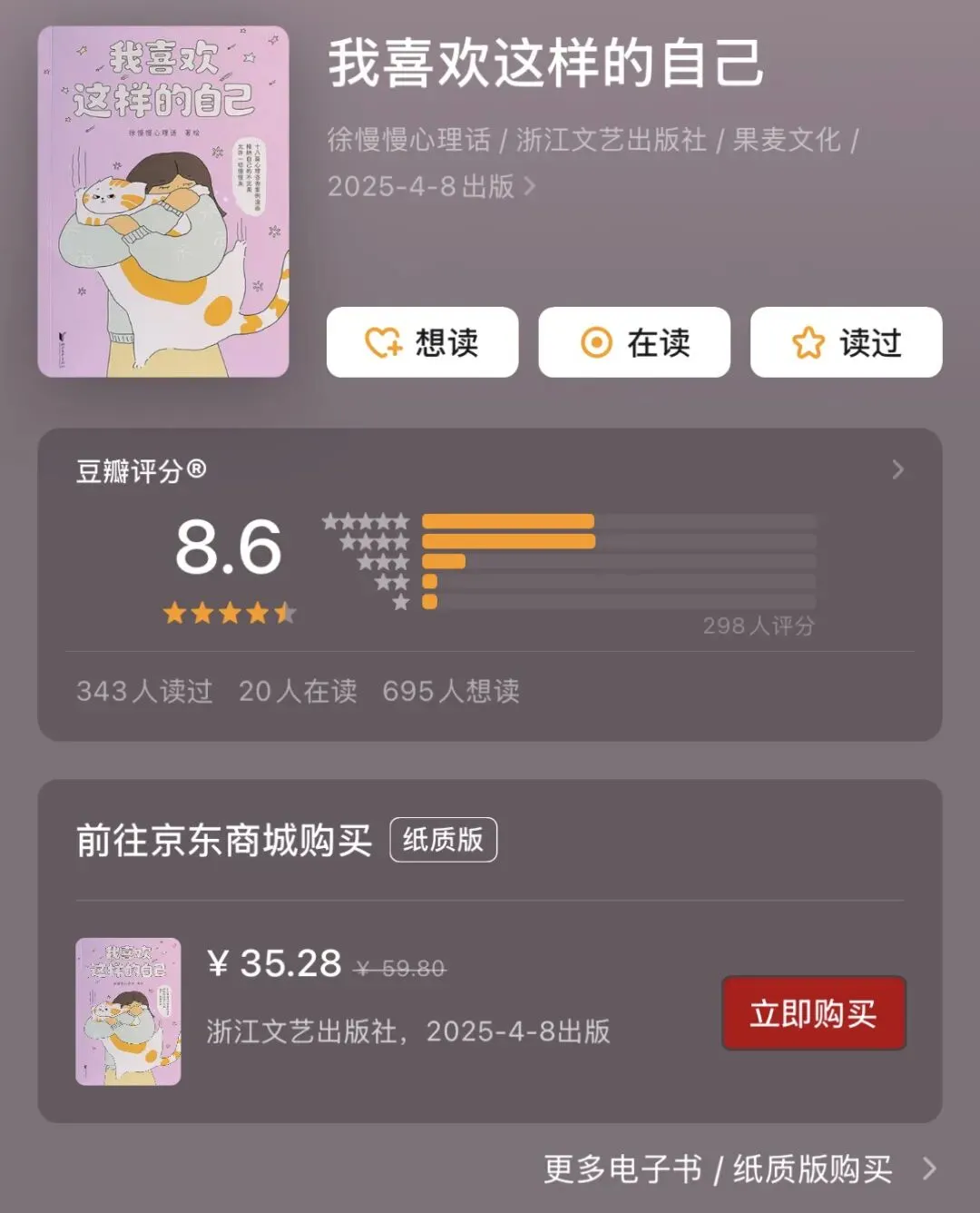在这个情绪被压抑、努力常被误解的时代,本书提供了一种珍贵的可能性:它教会我们如何慢下来,聆听内心的细微声音,在自我批评的惯性与焦虑中找到缝隙,让光透进来。穿越这些真实的故事,我们终将懂得:喜欢自己,并非达成完美后的奖励,而是从接纳此刻的真实与脆弱开始的旅程。这本书,正是那双手,陪伴你练习对自己说:“是的,我喜欢这样的自己。”