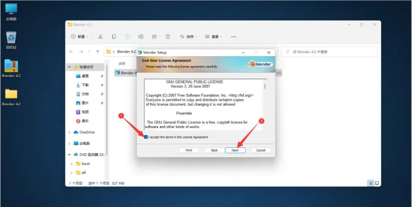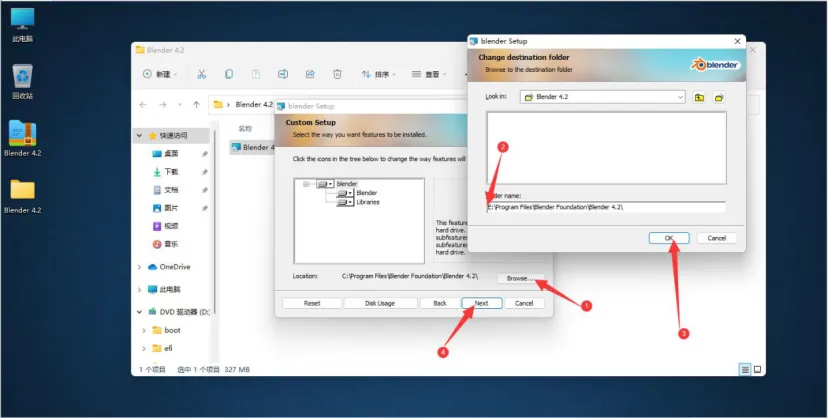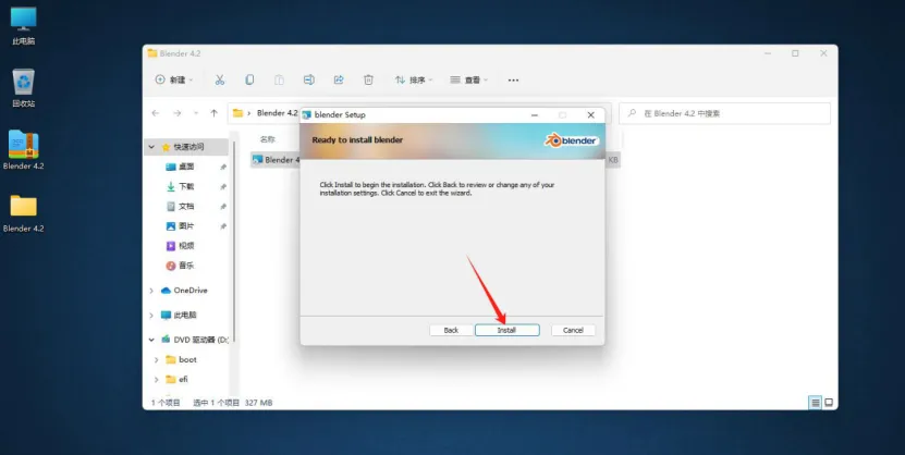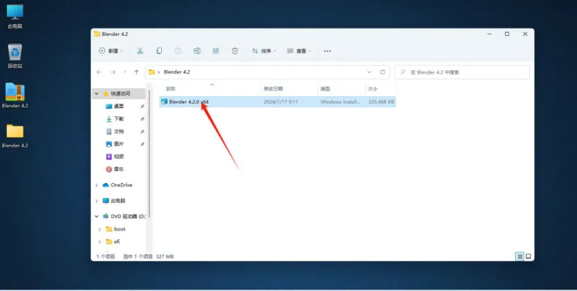 3.打开Blender4.2文件夹,然后直接双击打开安装程序!