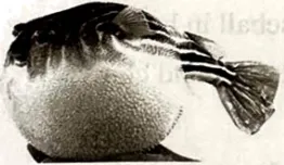 | What’s this? This is a fish. It is called a pufferfish (河豚). It has lots of thorns (河豚). It also has an air bag in its body. The air bag fills up. Then, the pufferfish looks like a ball. The thorns will stand out at the same time. This way, other animals cannot eat them. |
