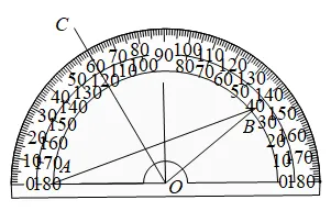 13. 量角器的中心记为点O,测角度时摆放的位置如图所示,点A、B在以O为圆心的半圆上,OA、OB、OC分别与0°、140°、60°刻度线重合.射线OC交AB于点D,则∠ADC=_______°.