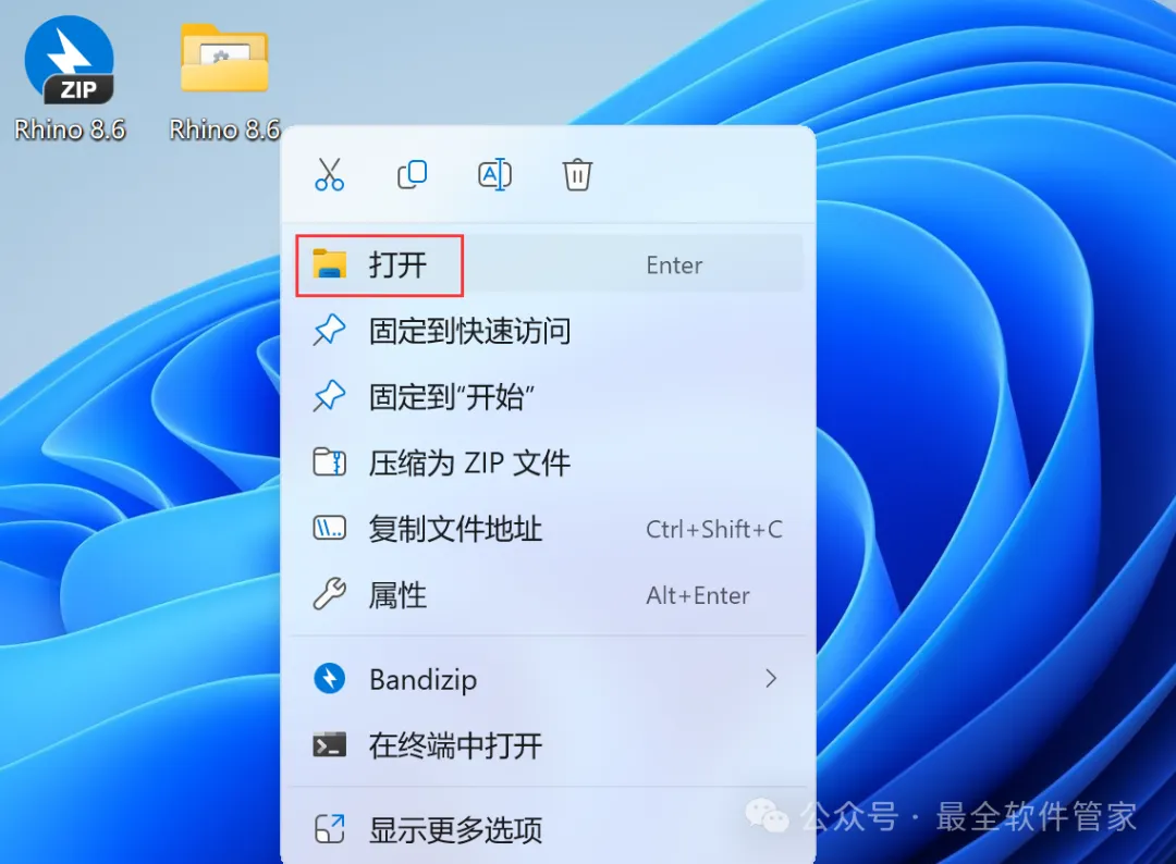 14、回到桌面,右键桌面上的【Rhino 8软件图标】,点击【打开】
