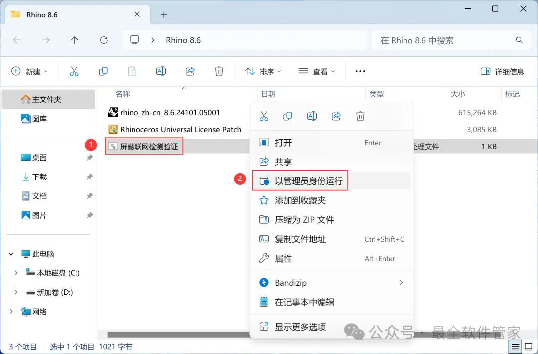 1、下载Rhino 8.6软件安装包到电脑上,右键选择【解压到Rhino 8.6\】