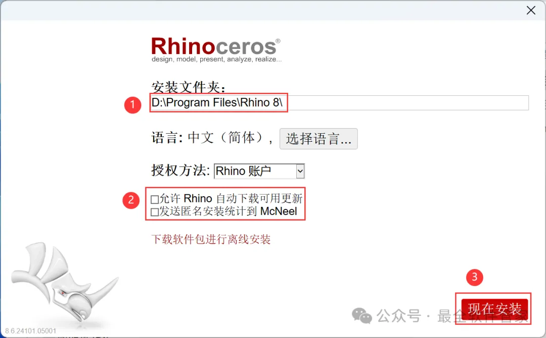 11、不勾选【Install…Rhinoceros 6】和【Install…Rhinoceros 7】,再点击【Install】