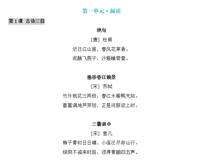 (古诗、课文、日积月累)