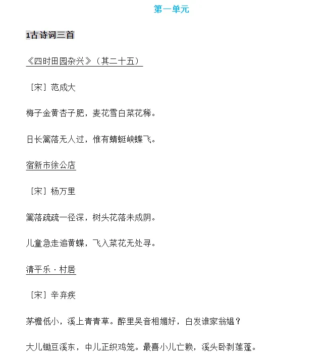 (古诗、课文、日积月累)