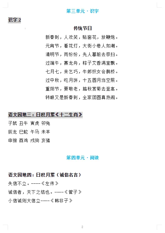 2026春二年级语文下册必背内容