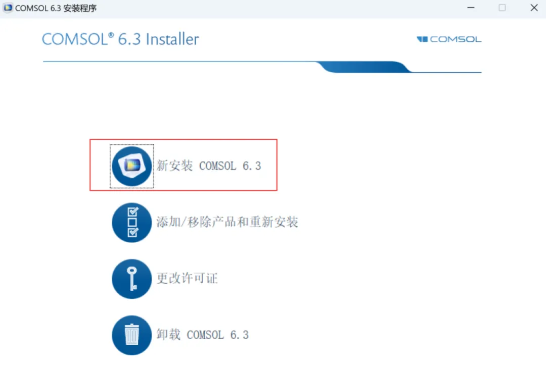 5、点击【新安装COMSOL 6.3】